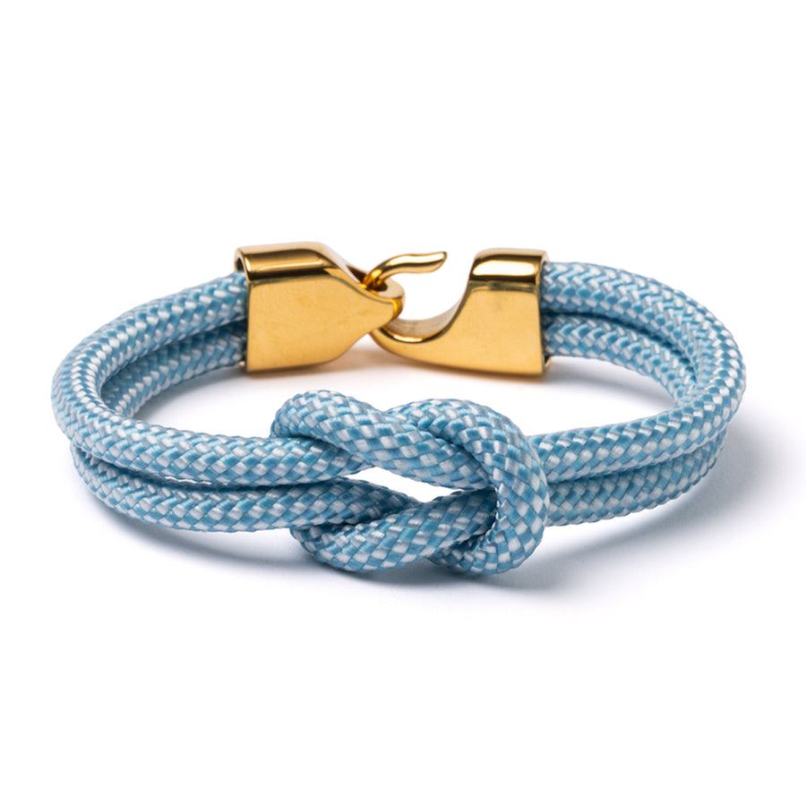 Our Limited Edition Collection bracelets are handcrafted in the Ocean State using our own custom, New England made, double braid line. Built to wear in, and on the water. High polish gold plated hook clasp.