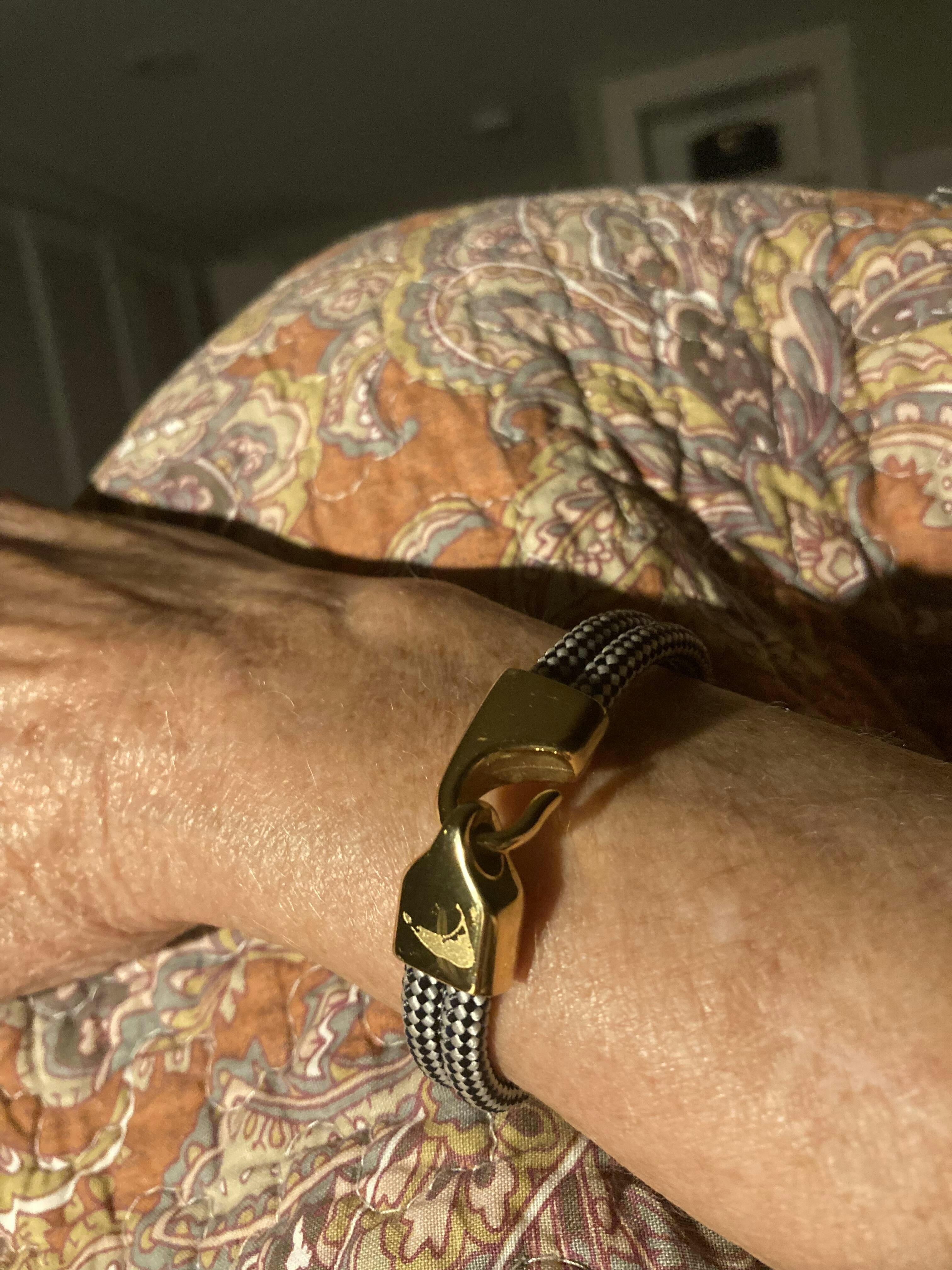 Our bracelets are handcrafted in the Ocean State using our own custom, New England made, diamond braid line. Built to wear in, and on the water. High polish gold plated hook clasp.